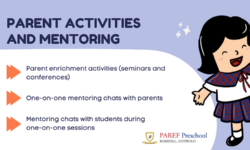 Hand in hand with the academic reputation of the school, PAREF Preschool Rosehill is also known for providing effective guidance to young parents, in order to give holistic formation for their children. Mentoring chats and parent activities serve as essential means to forging PAREF’s thrust of home-school collaboration.